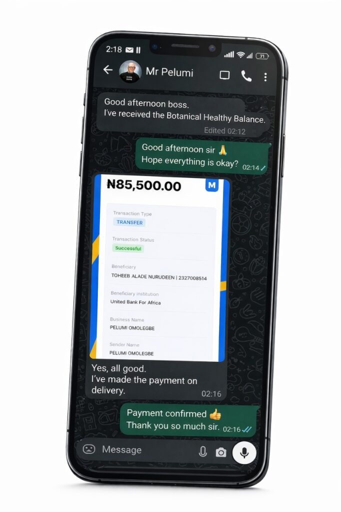 We'll send your product to your doorstep. We offer payment on delivery (cash/transfer).